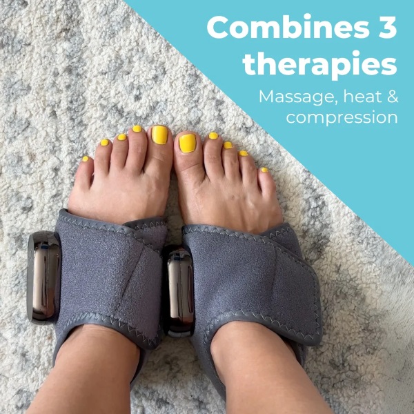 Sujungia cirkuliacinę kompresiją su švelnia šiluma, kad sumažintų skausmą ir nuovargį po sėdėjimo ar fizinio krūvio.