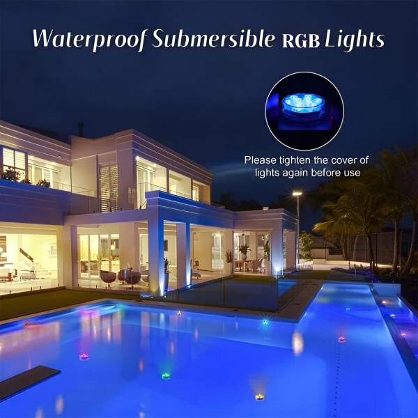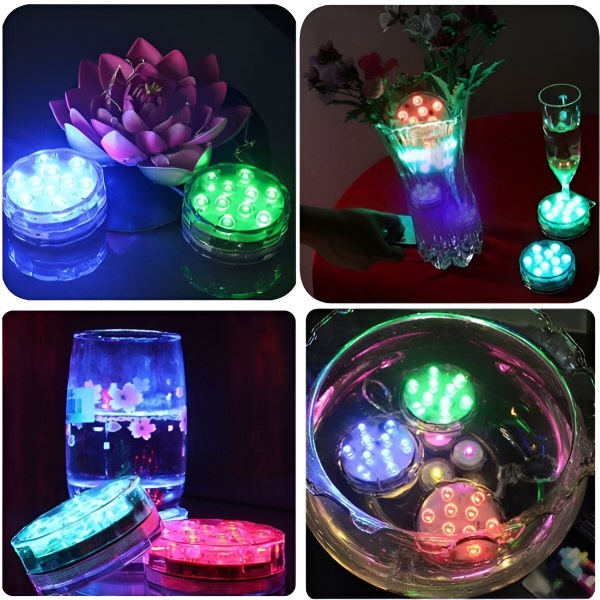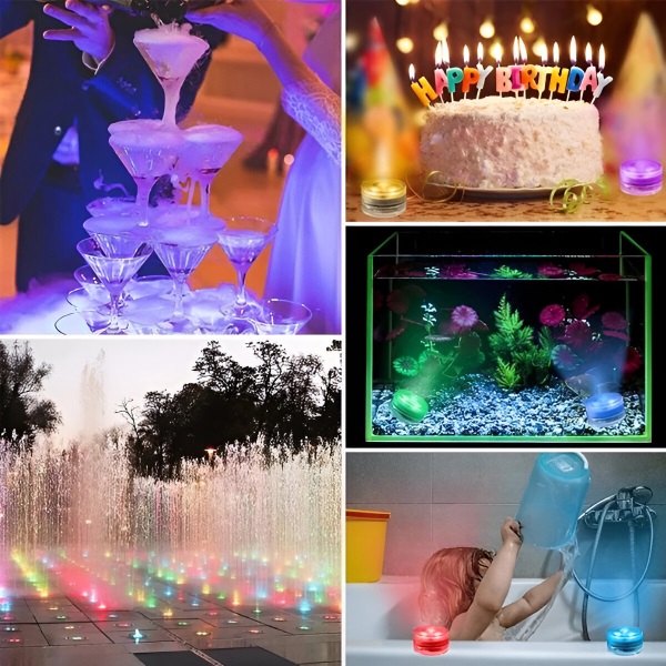 Jokių žvakių, jokių kibirkščių! Lengvai pagyvinkite bet kokio akvariumo, vandens talpyklos ar ledo kibirėlio išvaizdą. Šios mini vandens lemputės ryškiomis spalvomis elegantiškai pagražins baseiną, akvariumą, vazą ar bet kokį dekorą. Nesvarbu, ar rengiate vakarėlį, ar mėgaujatės ramiu vakaru, šios universalios RGB lemputės akimirksniu pagyvins jūsų aplinką.