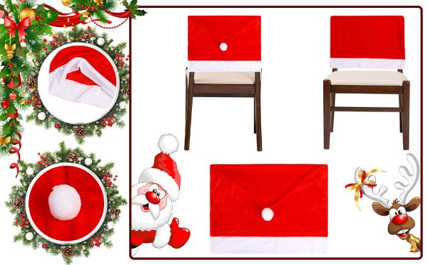 Raudonos kepurės kėdės atlošo užvalkalai puikiai tinka naudoti Kalėdų laikotarpiu, yra gera vidaus dekoracija namams, biurui ir klasei, paliks jūsų draugams, šeimai nuostabų kalėdinį įspūdį.
