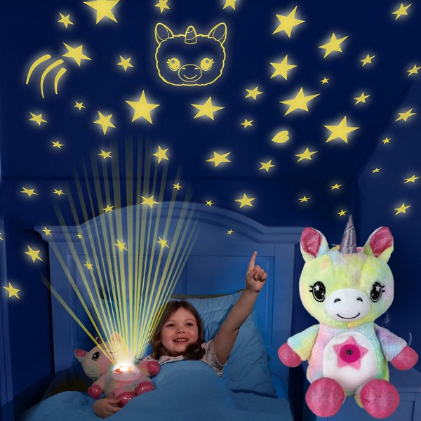 Pasinaudokite pasiūlymu su nuolaida ir užsisakykite savo Magiškas pliušinis vienaragis su žvaigždėto dangaus projekcija | STARBEAR šiandien