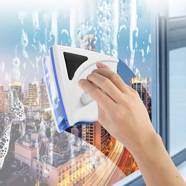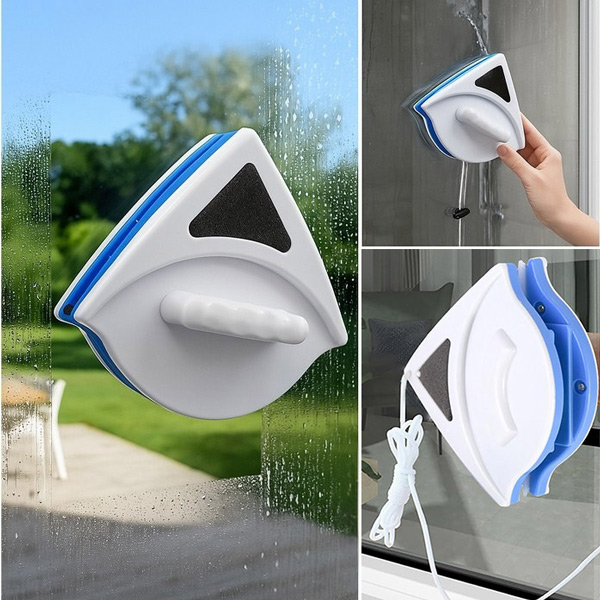 🧲 Dvipusis magnetinis dizainas: Stiprūs magnetai tvirtai laiko valiklį abiejose stiklo pusėse, leidžiant valyti išorinius ir vidinius paviršius vienu metu.