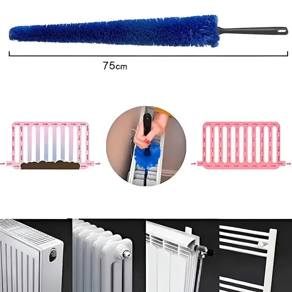 Nereikia nuimti radiatoriaus grotelių. DUSTOFF yra pritaikytas radiatoriams valyti. Jo elektrostatinis krūvis pritraukia dulkes ir nešvarumus, todėl jis idealiai tinka skydiniams, koloniniams, lėkštiniams, kopėčių tipo radiatoriams ir rankšluosčių džiovintuvams.