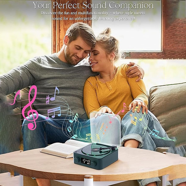 Retro vinilo grotuvo išvaizda suteikia jūsų stalui ar naktiniam staliukui klasikinio stiliaus akcentą.