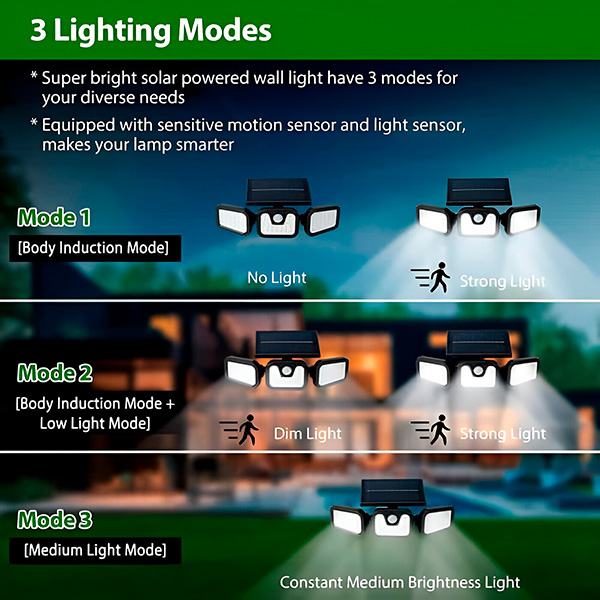 ✅ 3 išmanieji apšvietimo režimai – Pasirinkite jums reikalingą ryškumo lygį!